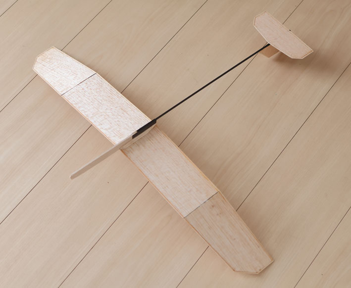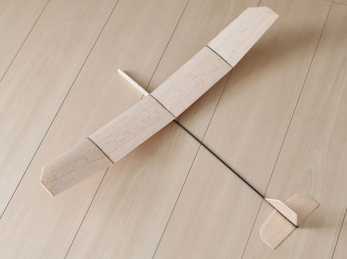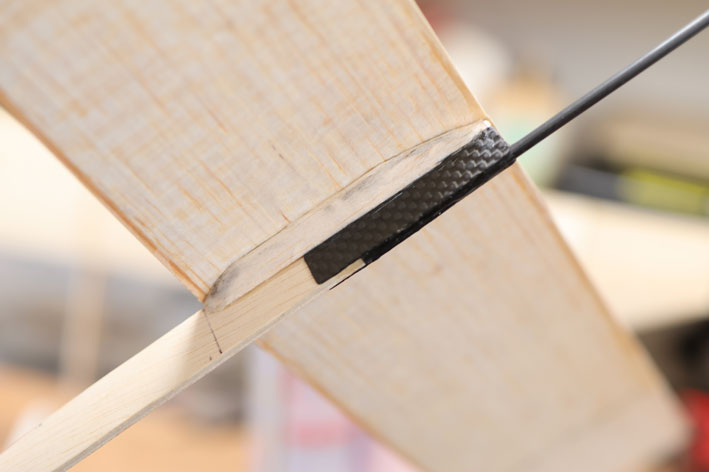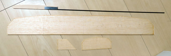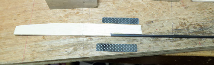 胴体は、3mm キリ板に 3mm カーボンパイプを接着して使用します。 |