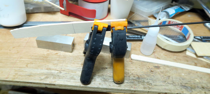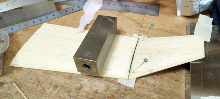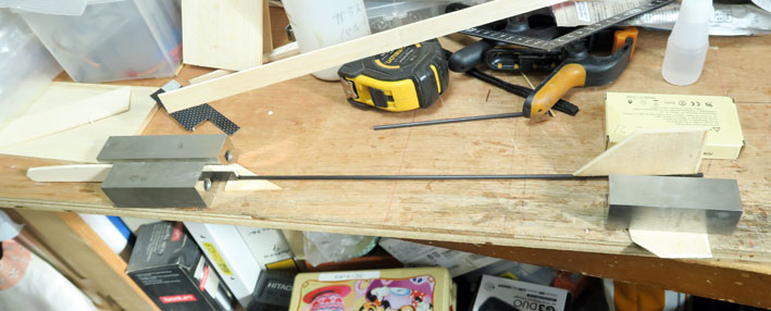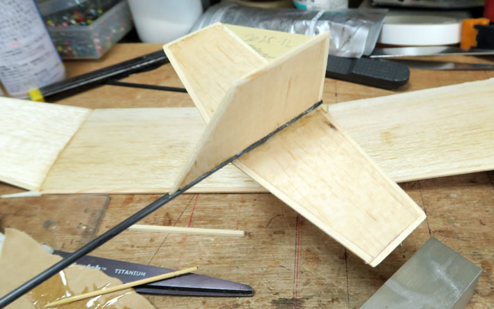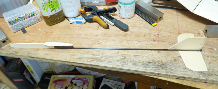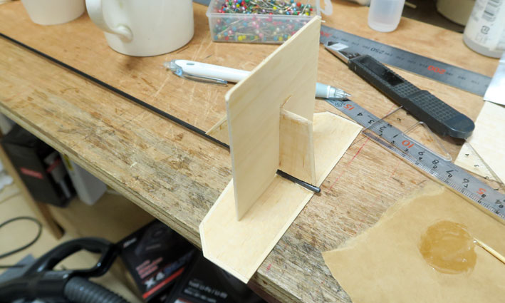 2機目から、尾翼の接着ジグを使い始めました。 |