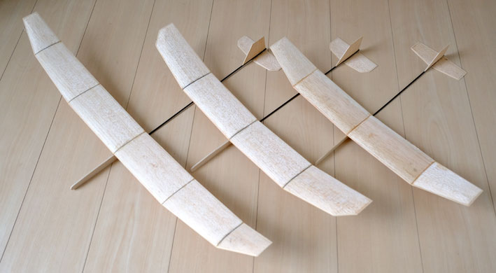 久しぶりにフリーのハンドランチグライダーを 3 機作ってみました。目的は、孫と遊ぶためです。 |